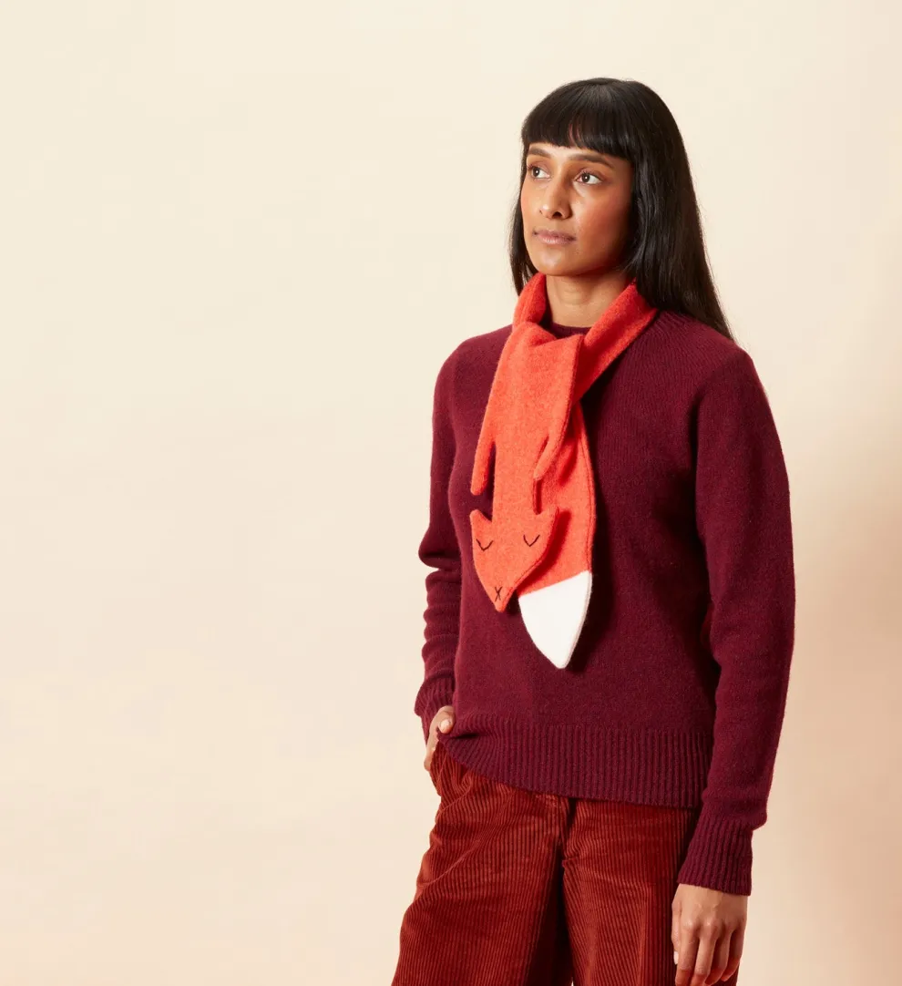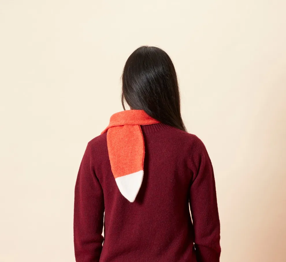 Quirky fox shaped scarf, especially for the animal lovers among you! No foxes were harmed in the making of this scarf.