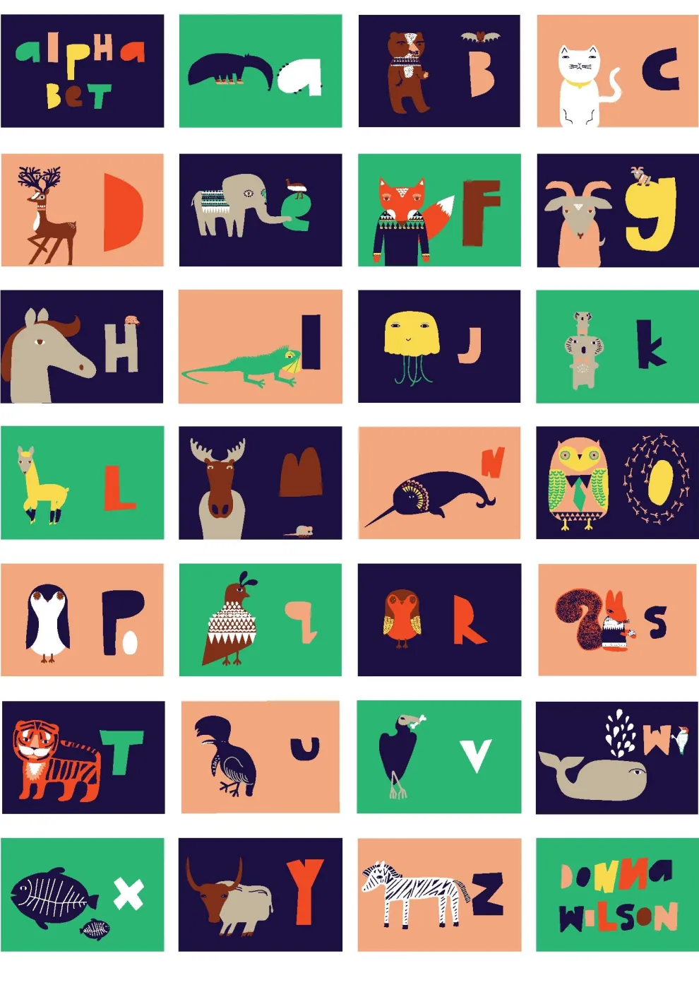 Anteaters to llamas, elephants to x-ray fish, this print features an illustration for each letter in the alphabet.