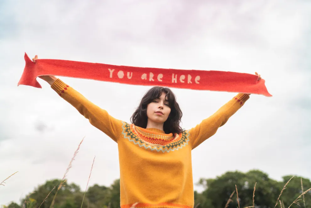 A cosy scarf to point you in the right direction. Wrap up warm and stay grounded this Autumn in our new You Are Here Scarf.