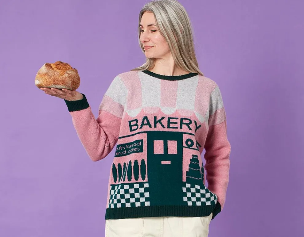 Part of our knitted high street inspired by traditional shop fronts, the Bakery Sweater is perfect for anyone partial to a patisserie.