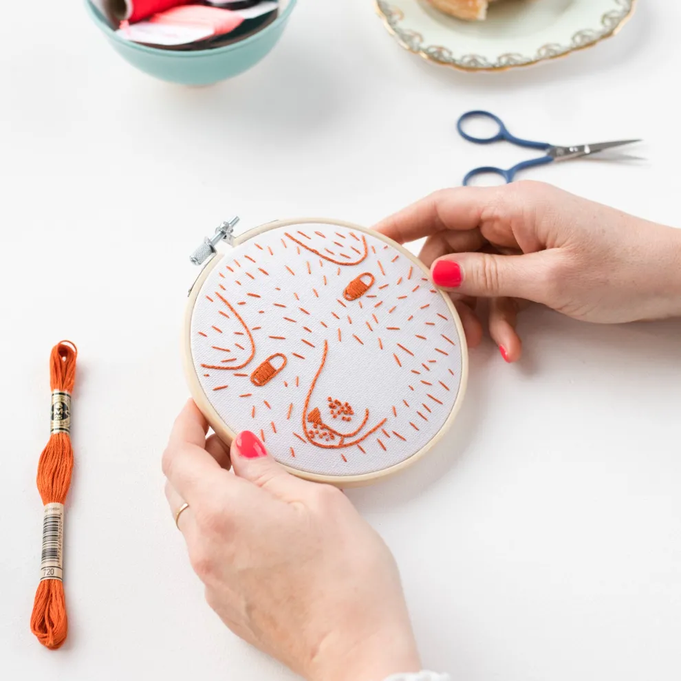 The Scamp Embroidery Kit is part of a collaboration with Cotton Clara. All of their kits are designed to be beginner-friendly – this kit uses French knots and split back stitch, so is best-suited for confident beginners. Each kit comes packaged in a colourful striped cardboard box, and is made in the UK.