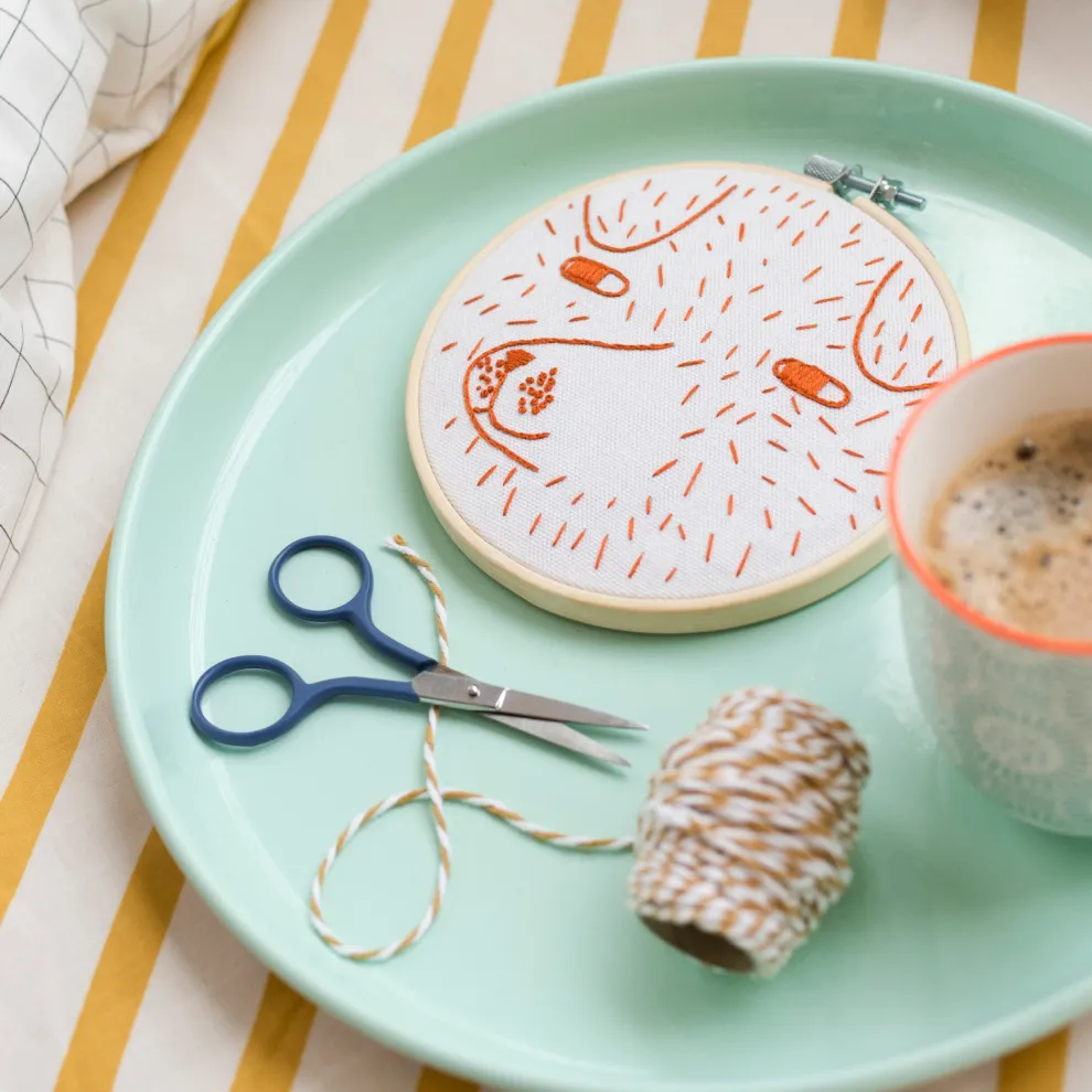 This Cotton Clara Scamp Embroidery Kit contains everything you need to make an embroidered Scamp piece – printed fabric, embroidery thread, medium hoop, embroidery needle, wadding and backing disc – as well as printed instructions to guide you step-by-step through the project. You’ll just need your own pair of scissors.
