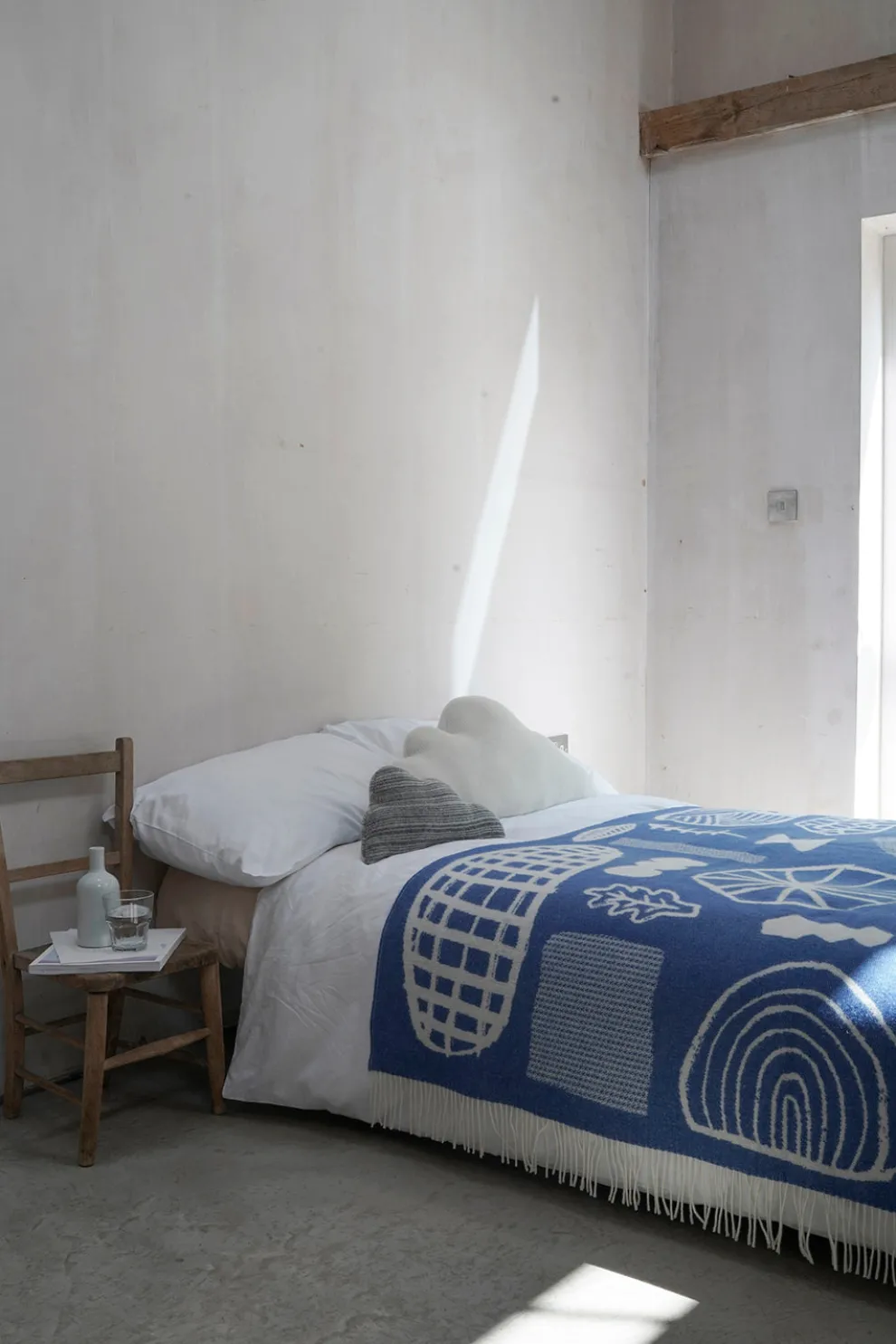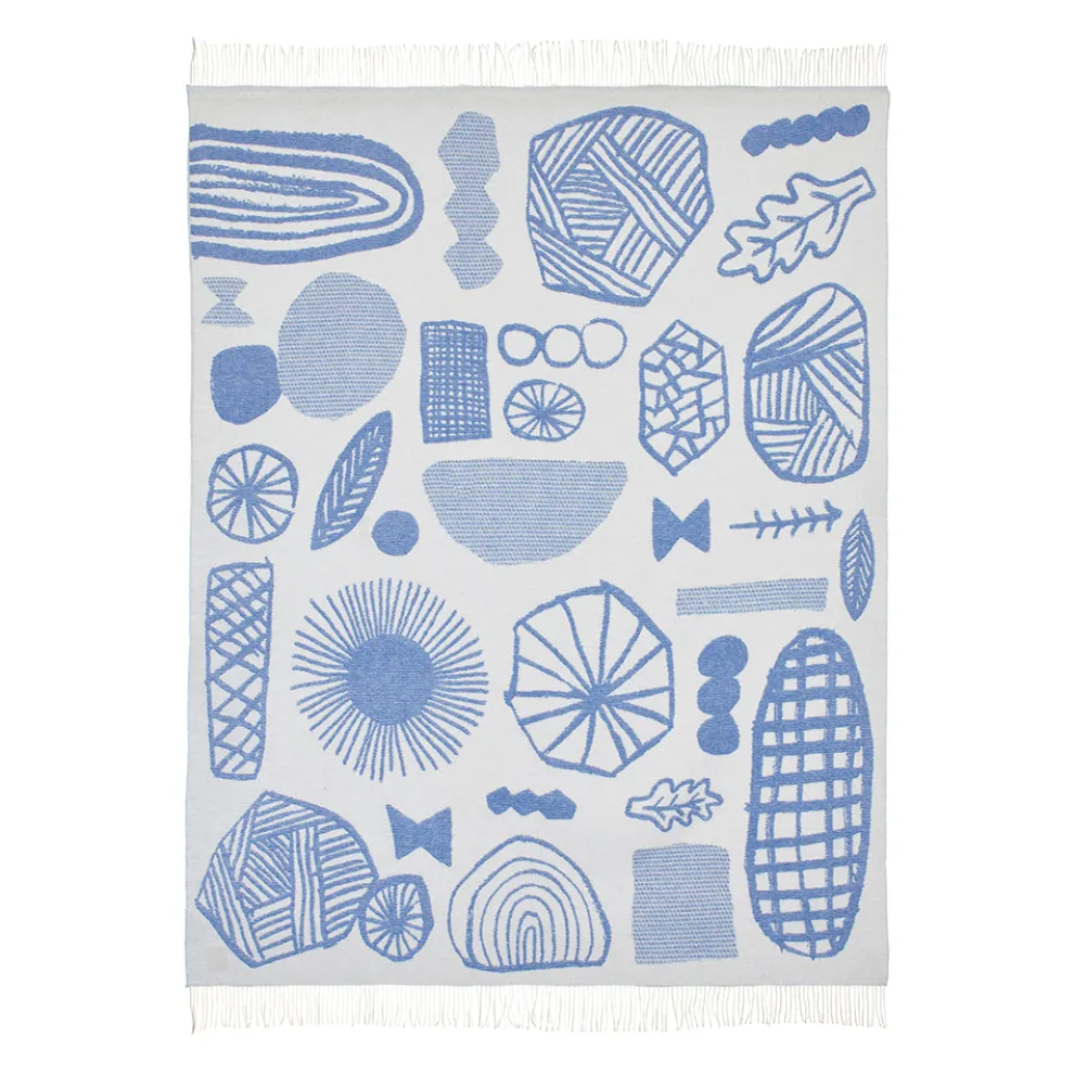 A soft lambswool blanket decorated with treasures foraged from the forest floor.