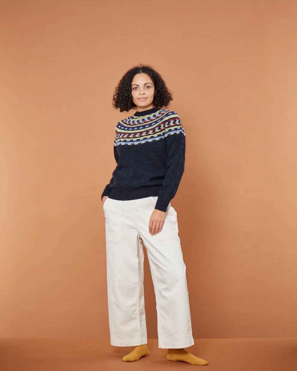 A glitch, you say? You won’t find any fault with this flattering charcoal Fair Isle-inspired sweater with colourful yoke detail.