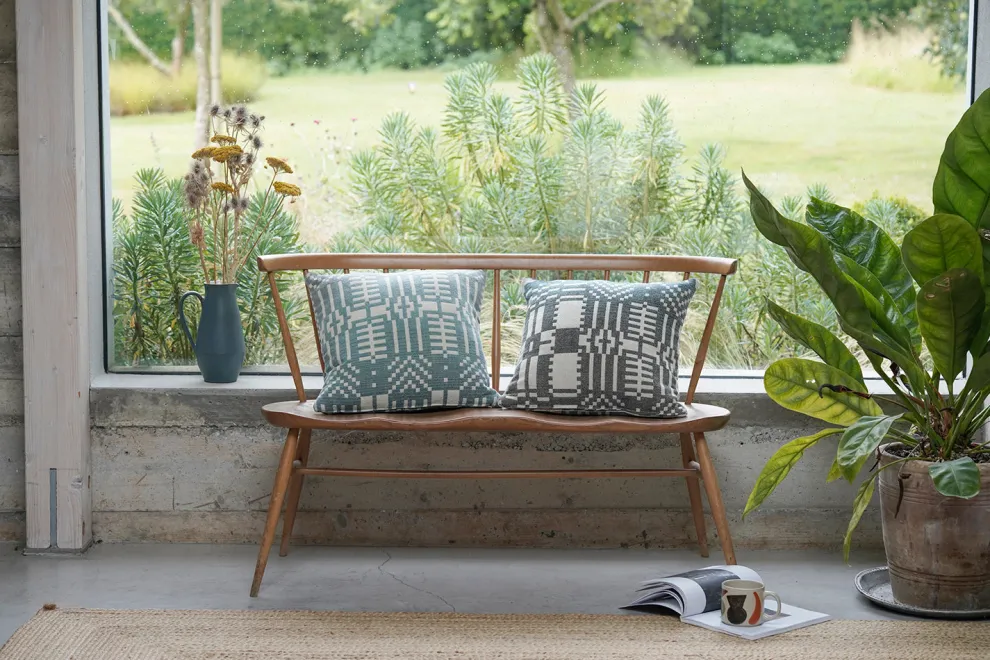 Inspired by falling rain and rolling waves, the Here Comes the Rain Cushion is a beautiful ombre double cloth design, woven on a dobby loom.