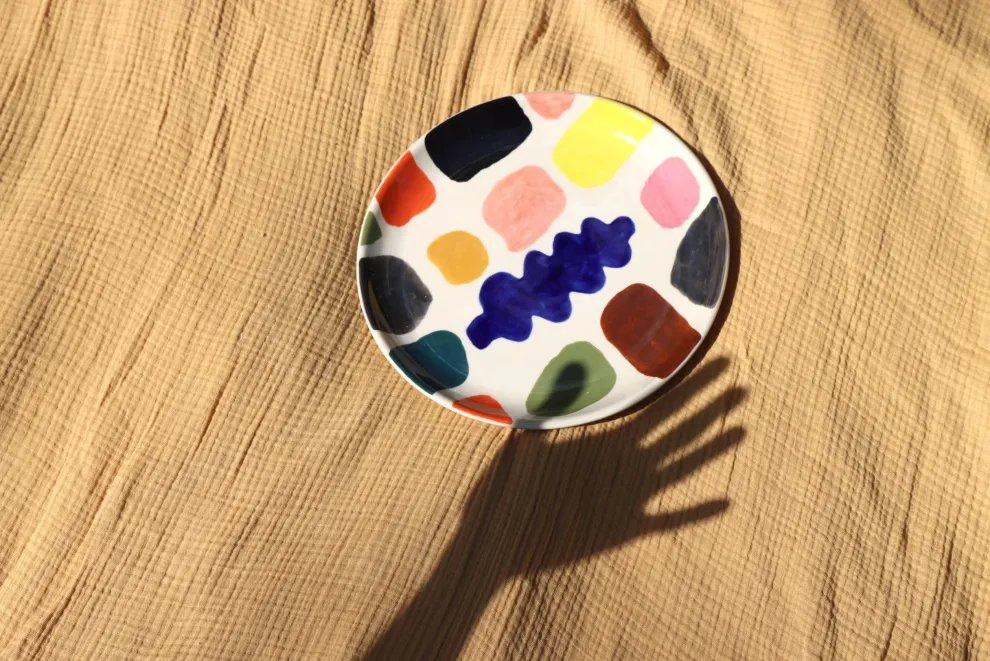 Each dinner plate is hand painted in Portugal and completely unique. A matching side plate is also available. Mix with our other stoneware ceramics, or match with the rest of the Mottle range for a colourful table setting.